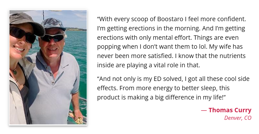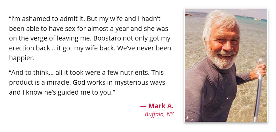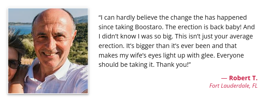 Every day, I hear from folks all over the U.S. who say that taking Boostaro is like getting the vigor of a teenager again, ensuring your sex drive is high and improving your health markers 24/7.